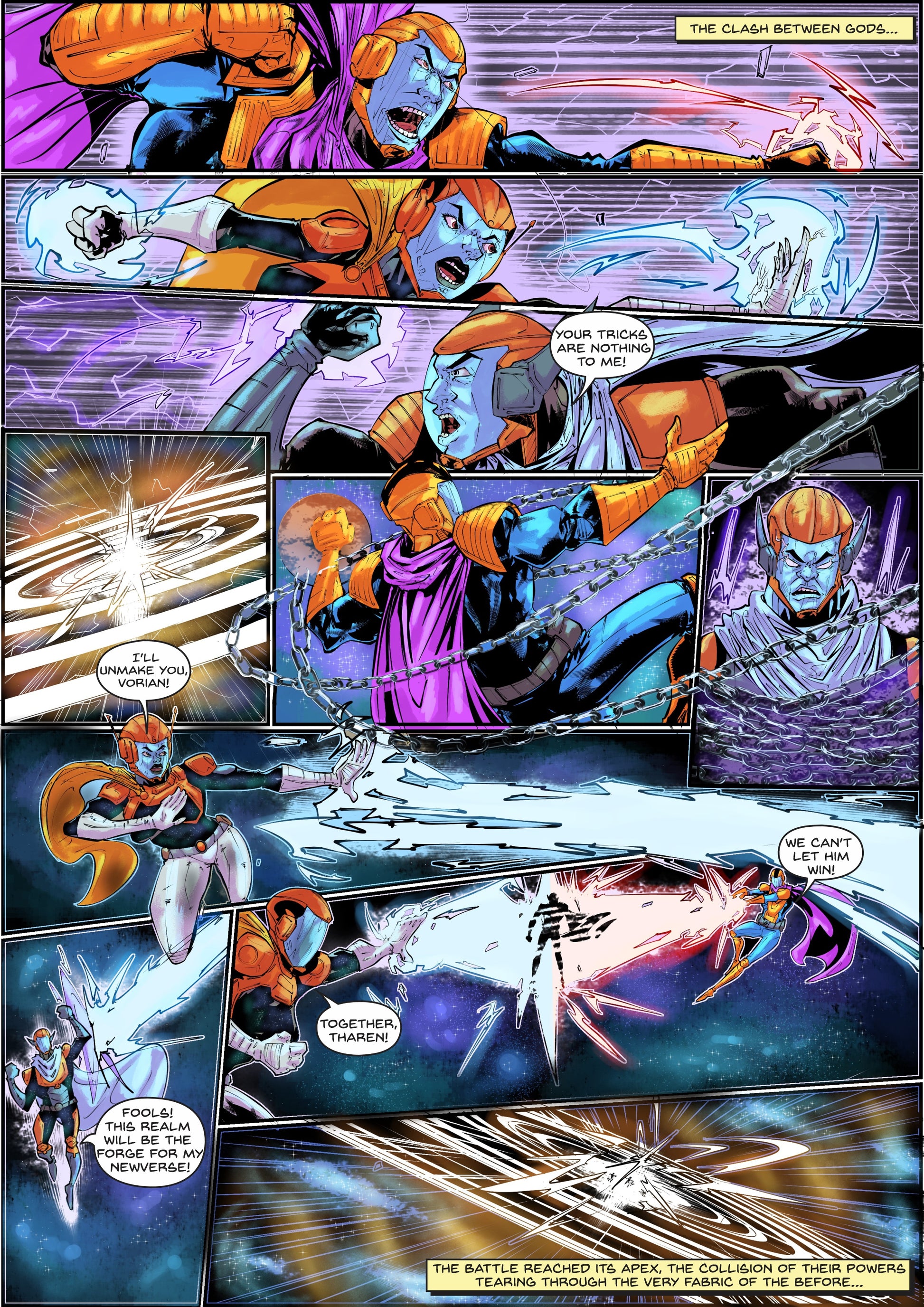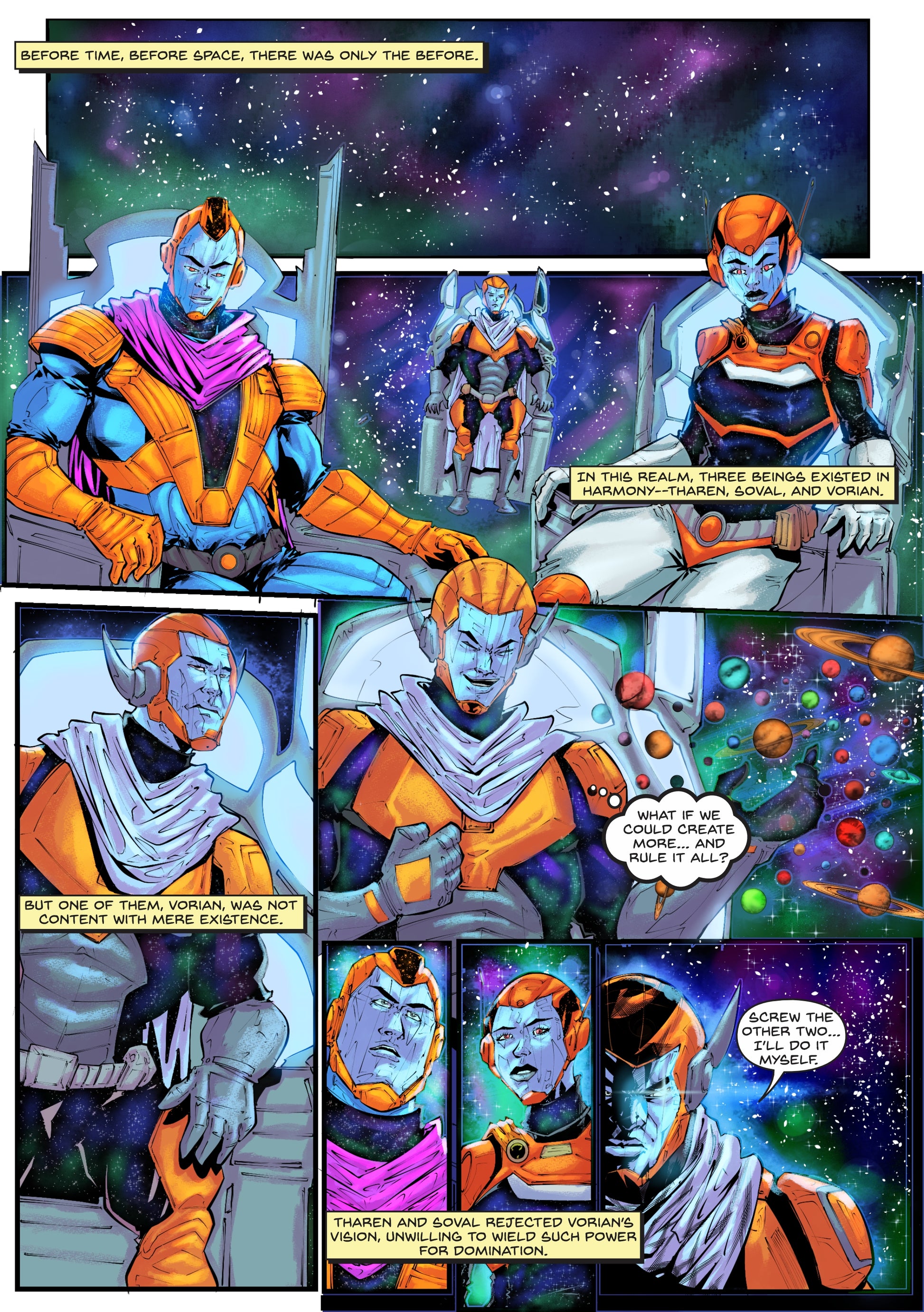 Before time, before space, there was only The Before. From the void rose three cosmic beings—Tharen, Soval, and Vorian—who lived in harmony… until one sought to reshape existence. Betrayal ignites a war of godlike forces, tearing reality apart and giving birth to the NewVerse. Now, hidden on Earth in human form, Tharen and Soval must prepare for the inevitable return of Vorian, whose scattered essence threatens to rise again. As new heroes unknowingly step into a cosmic struggle, the fate of all existence hangs in the balance.